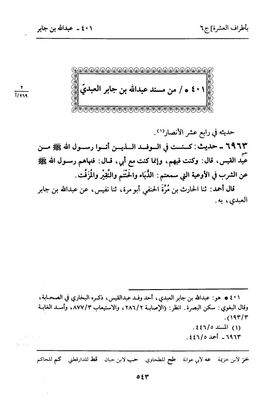 401 ـ مِنْ مُسْنَدِ عَبْدِ اللَّهِ بْنِ جَابِرٍ الْعَبْدِيِّ.