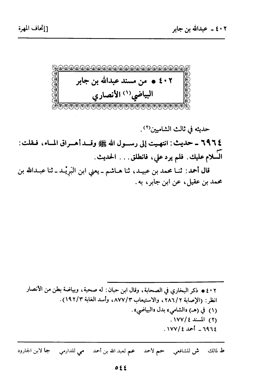 402 ـ مِنْ مُسْنَدِ عَبْدِ اللَّهِ بْنِ جَابِرٍ الْبَيَاضِيِّ الأَنْصَارِيِّ.