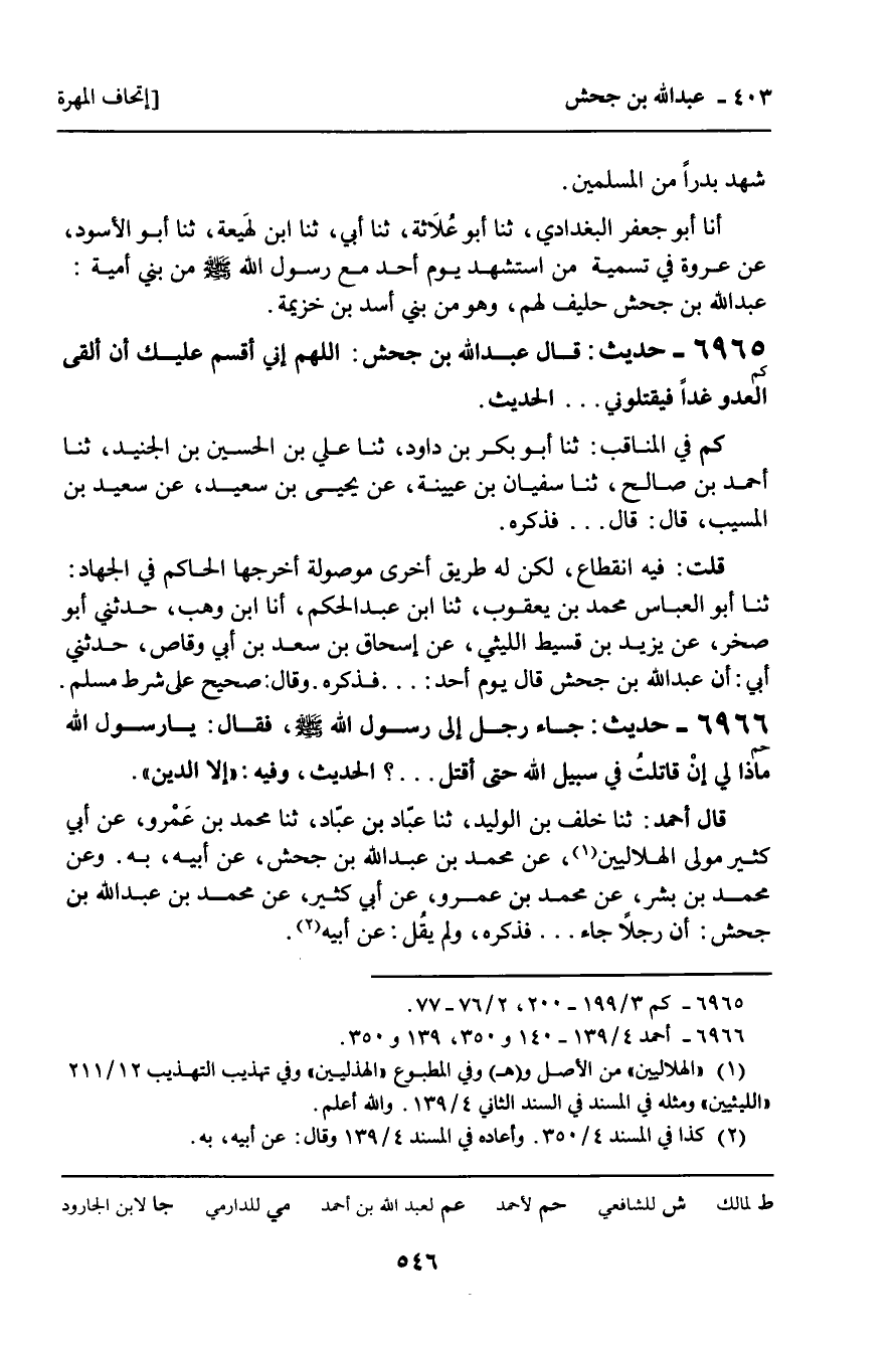 6965 - حَدِيثٌ (كم) : قَالَ عَبْدُ اللَّهِ بْنُ جَحْشٍ: اللَّهُمَّ، إِنِّي أُقْسِمُ عَلَيْكَ أَنْ أَلْقَى الْعَدُوَّ غَدًا فَيَقْتِلُونِي. . . الْحَدِيثَ.