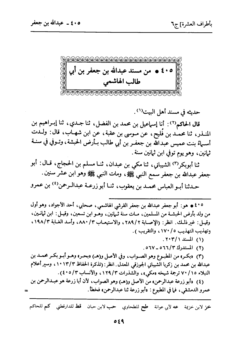 405 ـ مِنْ مُسْنَدِ عَبْدِ اللَّهِ بْنِ جَعْفَرِ بْنِ أَبِي طَالِبٍ الْهَاشِمِيِّ.