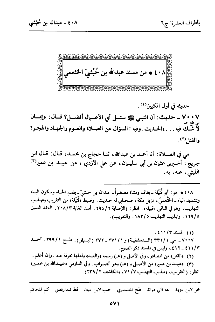 408 ـ مِنْ مُسْنَدِ عَبْدِ اللَّهِ بْنِ حُبْشِيٍّ الْخَثْعَمِيِّ.