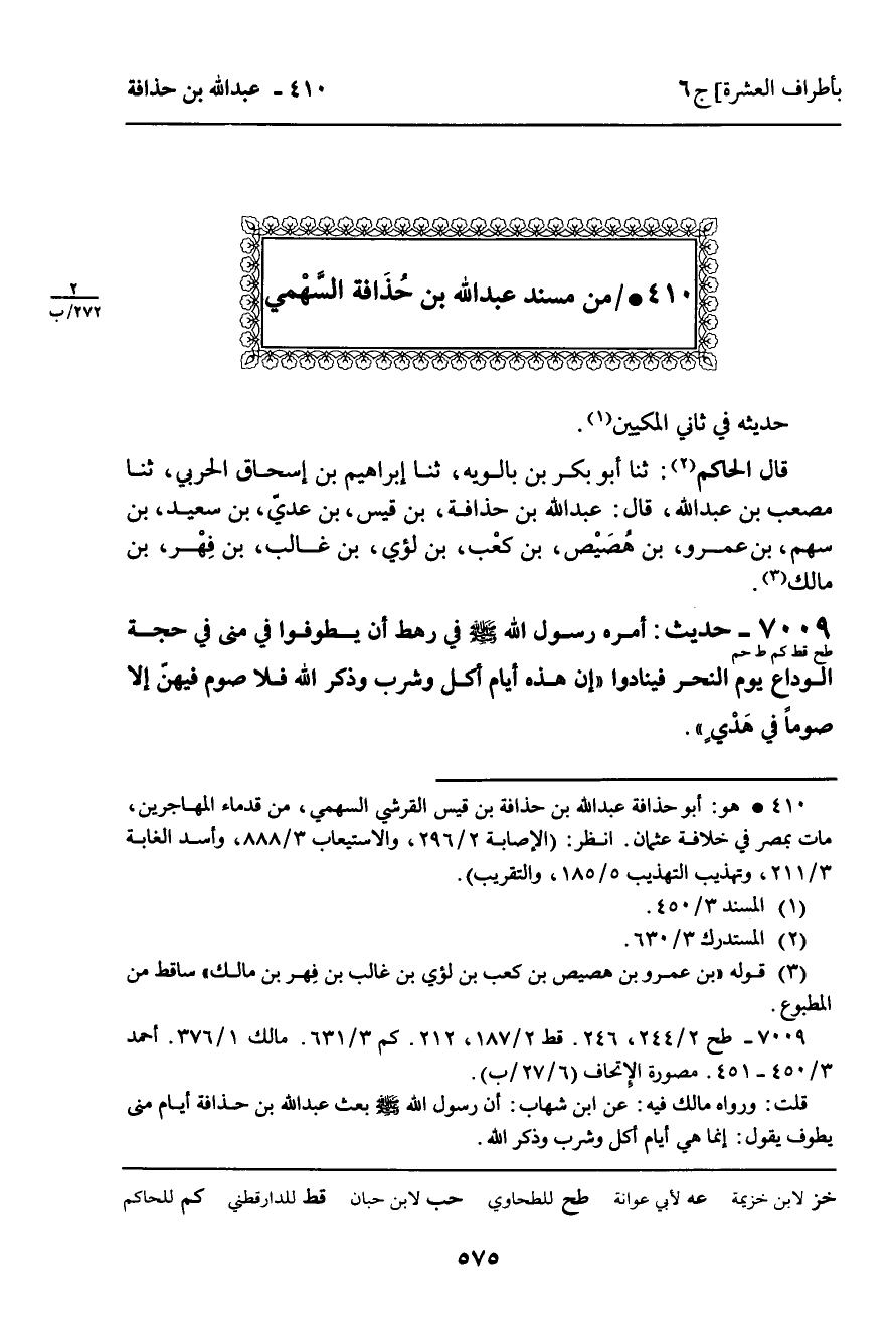 410 ـ مِنْ مُسْنَدِ عَبْدِ اللَّهِ بْنِ حُذَافَةَ السَّهْمِيِّ.