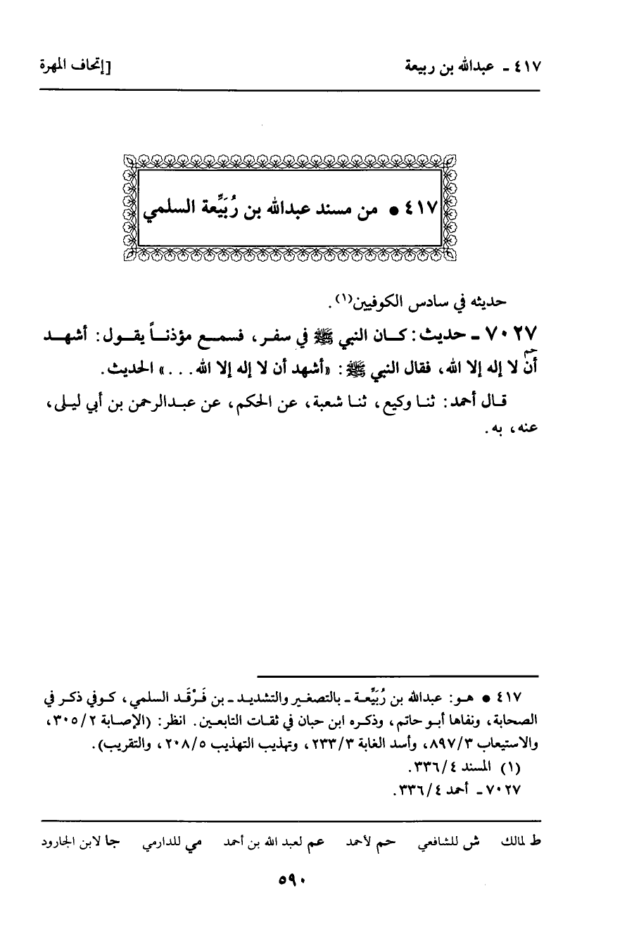 417 ـ مِنْ مُسْنَدِ عَبْدِ اللَّهِ بْنِ رَبِيعَةَ السُّلَمِيِّ.