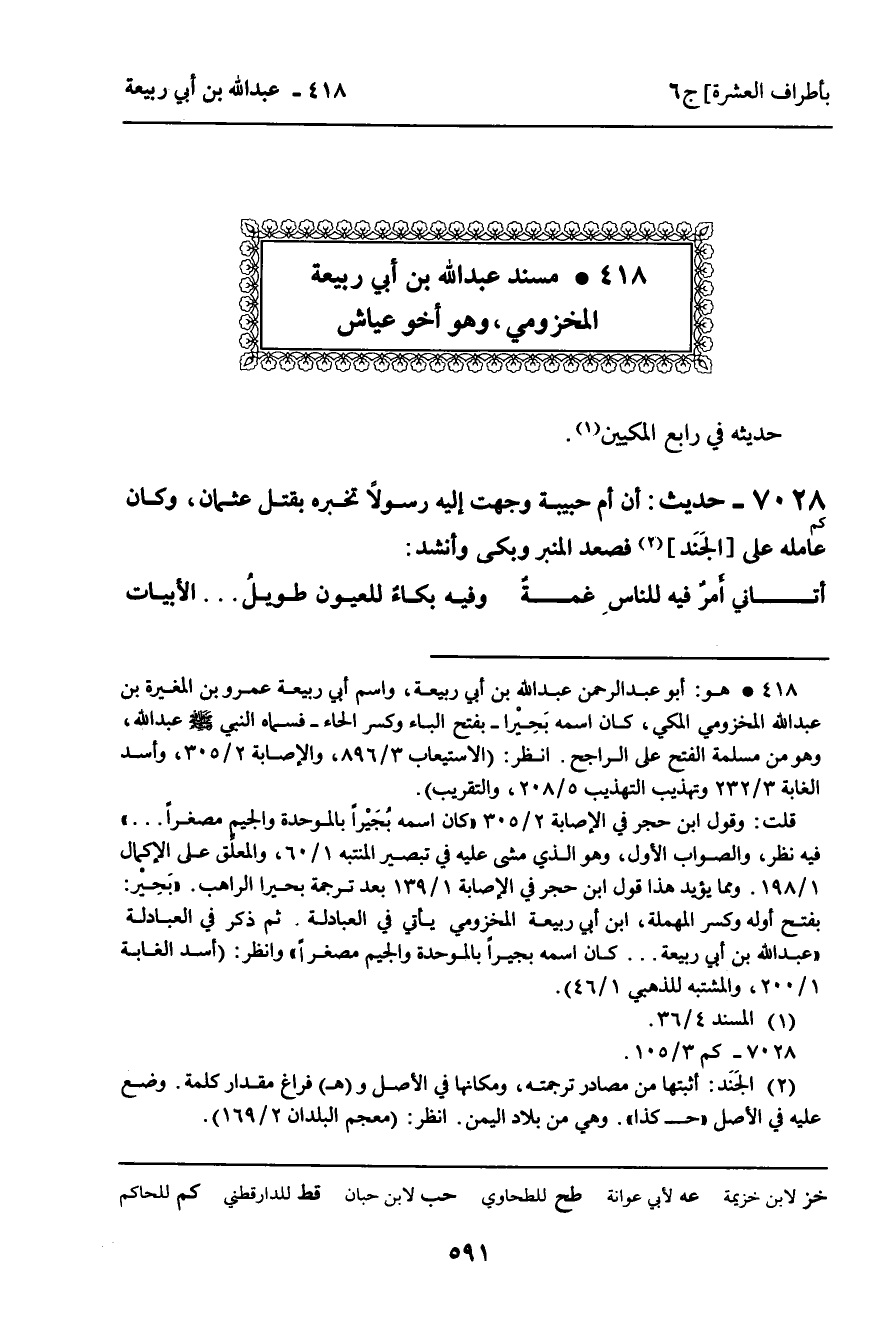 418 ـ مُسْنَدُ عَبْدِ اللَّهِ بْنِ أَبِي رَبِيعَةَ الْمَخْزُومِيِّ، وَهُوَ أَخُو عَيَّاشٍ.