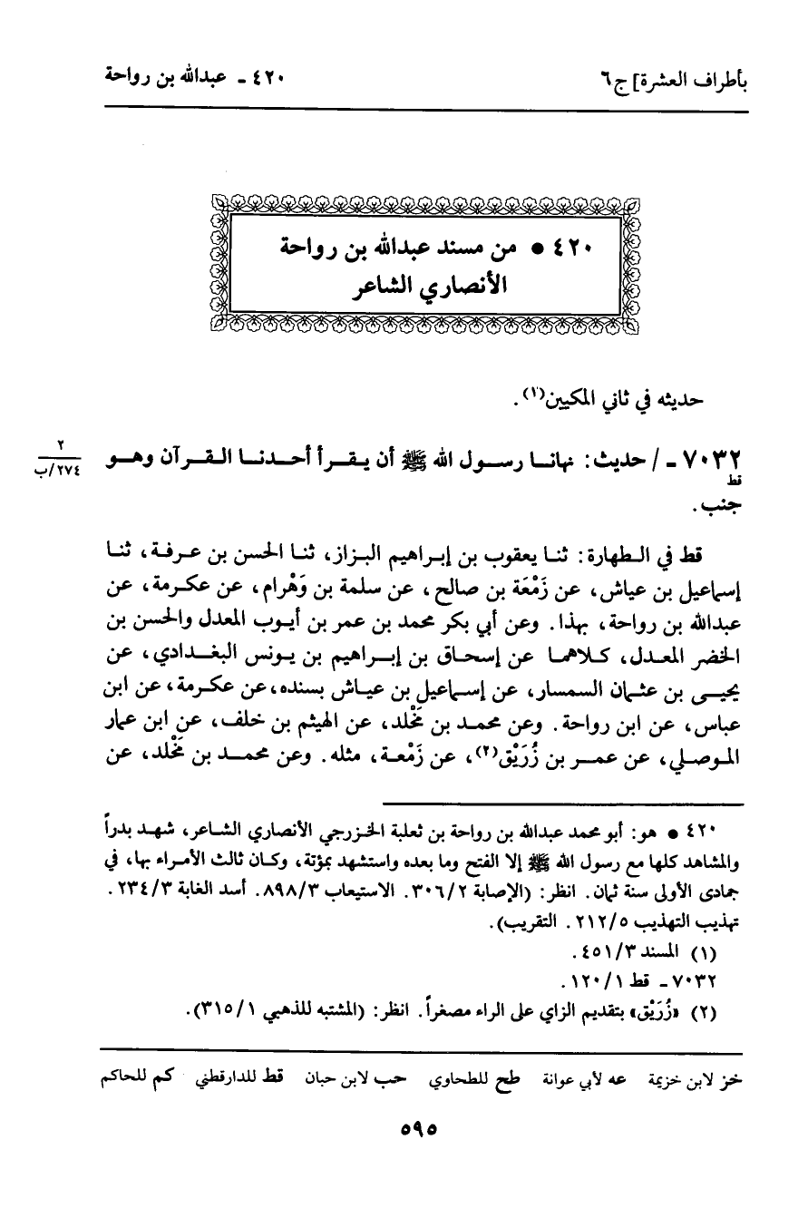 420 ـ مِنْ مُسْنَدِ عَبْدِ اللَّهِ بْنِ رَوَاحَةَ الأَنْصَارِيِّ الشَّاعِرِ.