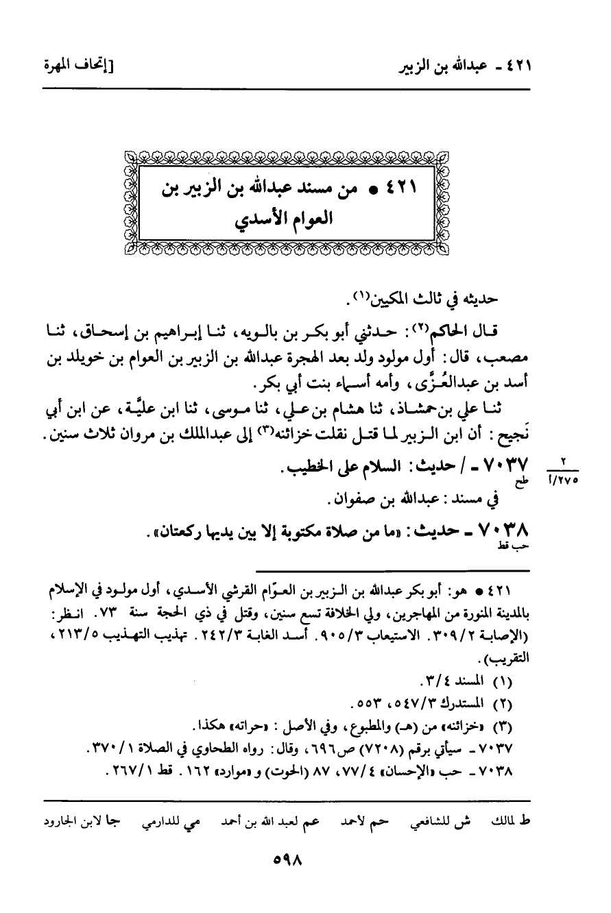 421 ـ مِنْ مُسْنَدِ عَبْدِ اللَّهِ بْنِ الزُّبَيْرِ بْنِ الْعَوَّامِ الأَسَدِيِّ.