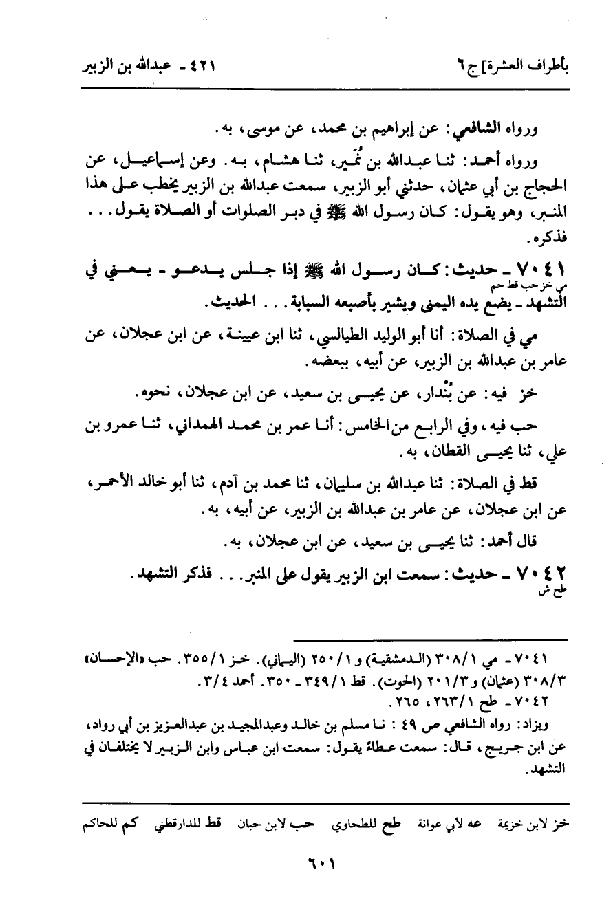 7042 - حَدِيثٌ (طح ش) : سَمِعْتُ ابْنَ الزُّبَيْرِ يَقُولُ عَلَى الْمِنْبَرِ. . . فَذَكَرَ التَّشَهُّدَ.