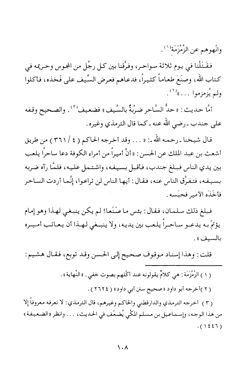 أمَّا حديث: "حدُّ السَّاحر ضرْبةٌ بالسَّيف" فضعيف (¬3). والصحيح وقفه على جندب -رضي الله عنه- كما قال الترمذي وغيره.