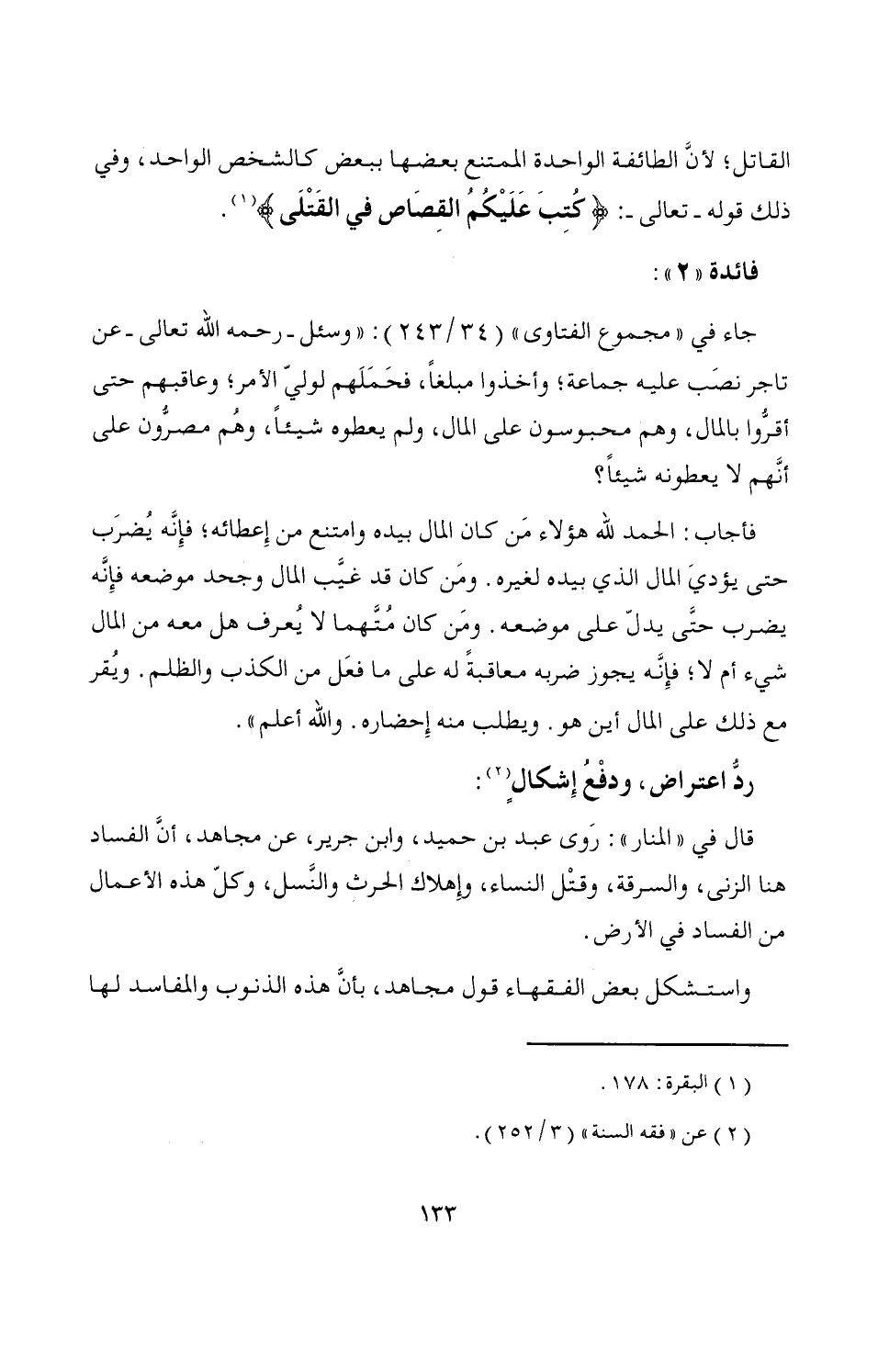 القاتل؛ لأنَّ الطائفة الواحدة الممتنع بعضها ببعض كالشخص الواحد، وفي ذلك قوله -تعالى-: {كُتِبَ عَلَيْكُمُ القِصَاص في القَتْلَى} (¬1).