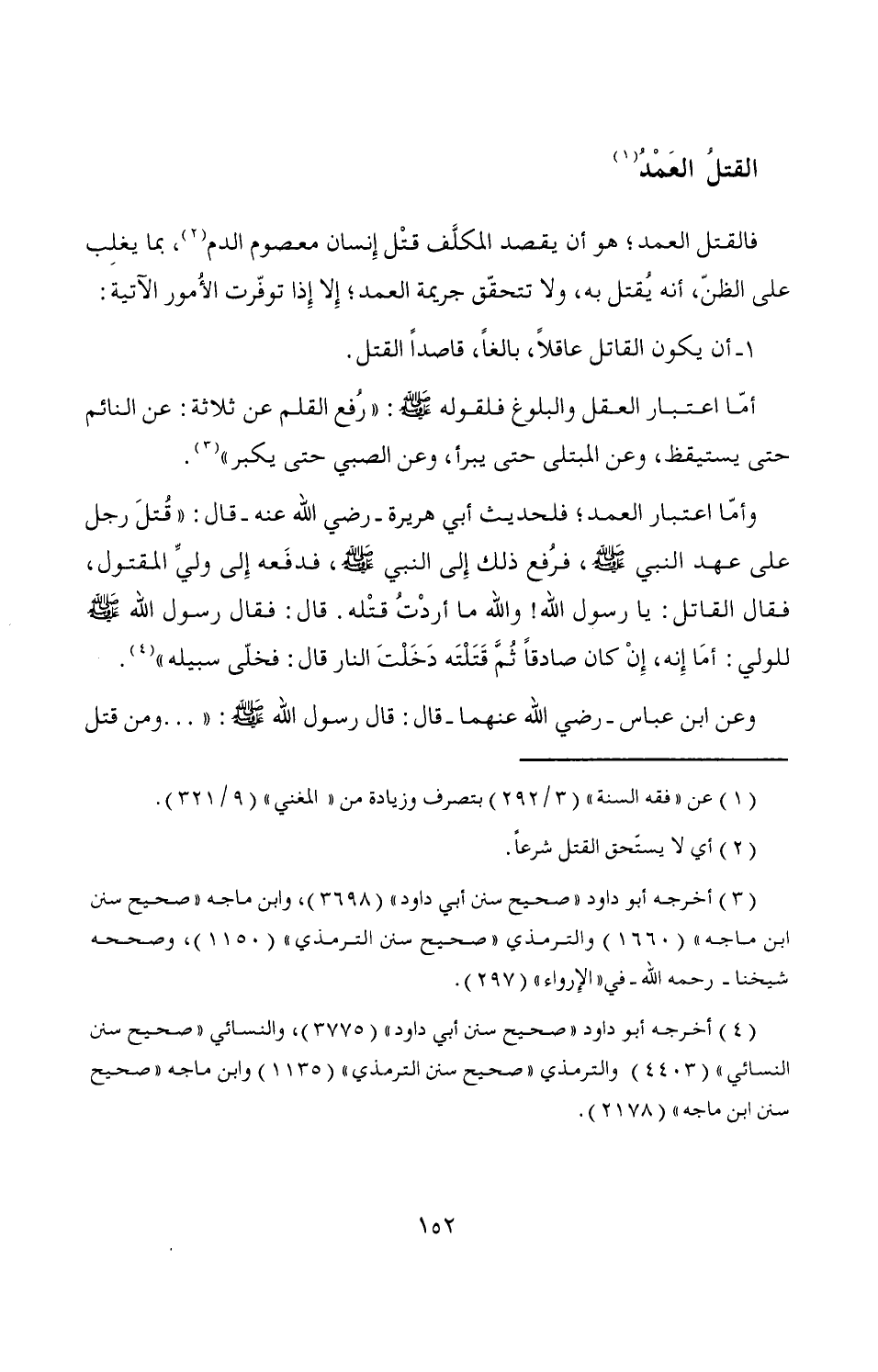 وأمّا اعتبار العمد؛ فلحديث أبي هريرة -رضي الله عنه- قال: "قُتلَ رجل على عهد النبي - صَلَّى اللَّهُ عَلَيْهِ وَسَلَّمَ -، فرُفع ذلك إِلى النبي - صَلَّى اللَّهُ عَلَيْهِ وَسَلَّمَ -، فدفَعه إِلى وليِّ المقتول، فقال القاتل: يا رسول الله! والله ما أردْتُ قتْله. قال: فقال رسول الله - صَلَّى اللَّهُ عَلَيْهِ وَسَلَّمَ - للولي: أمَا إِنه، إِنْ كان صادقاً ثُمَّ قَتَلْتَه دَخَلْتَ النار قال: فخلّى سبيله" (¬4).