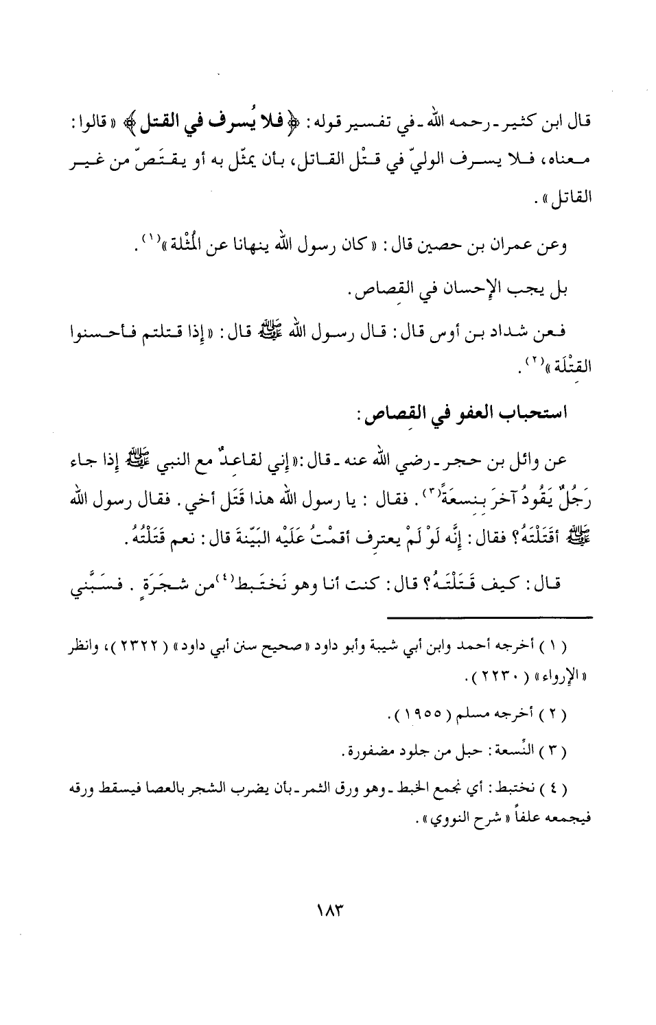 قال ابن كثير -رحمه الله- في تفسير قوله: {فلا يُسرف في القتل} "قالوا: معناه، فلا يسرف الوليّ في قتْل القاتل، بأن يمثّل به أو يقتَصّ من غير القاتل".