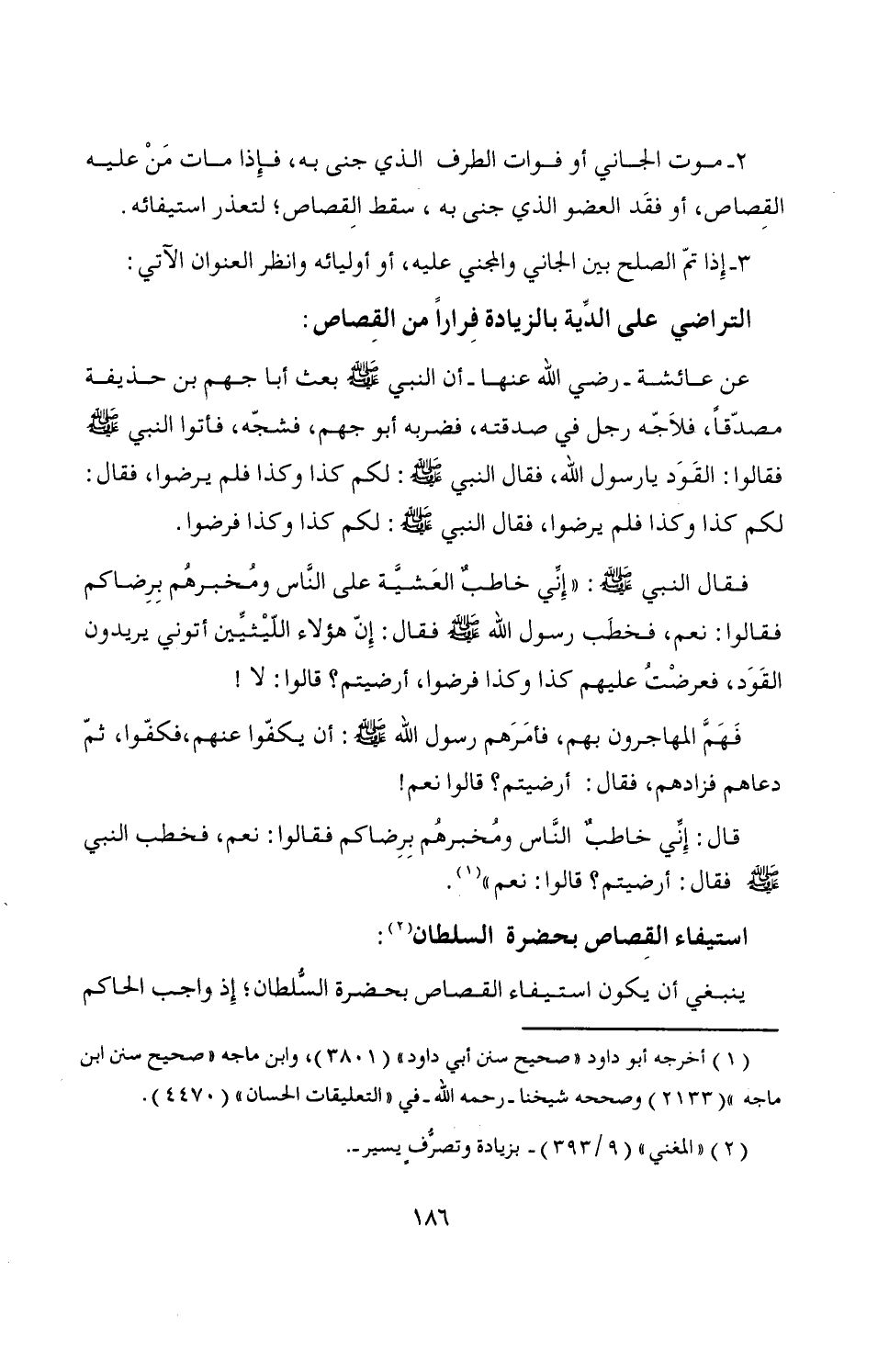 3 - إِذا تمّ الصلح بين الجاني والمجني عليه، أو أوليائه وانظر العنوان الآتي: