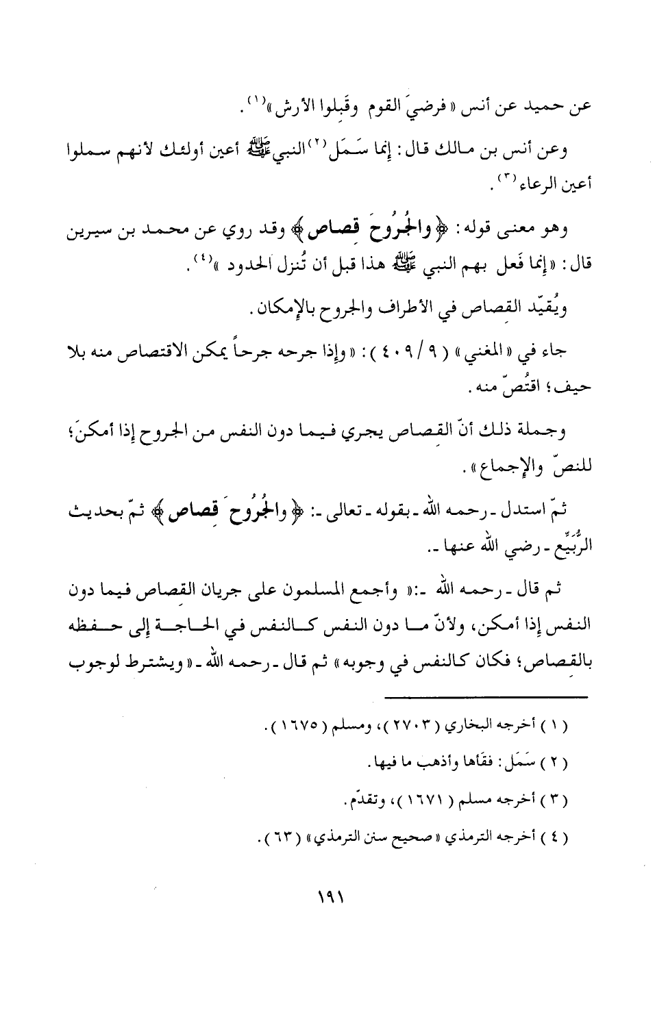 ثمّ استدل -رحمه الله- بقوله -تعالى-: {والجُرُوحَ قِصاص} ثمّ بحديث الرُّبَيِّع -رضي الله عنها-.