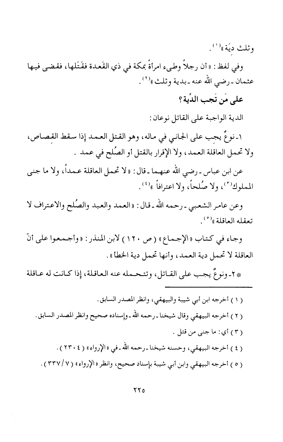 *2 - ونوعٌ يجب على القاتل، وتتحمله عنه العاقلة، إِذا كانت له عاقلة
