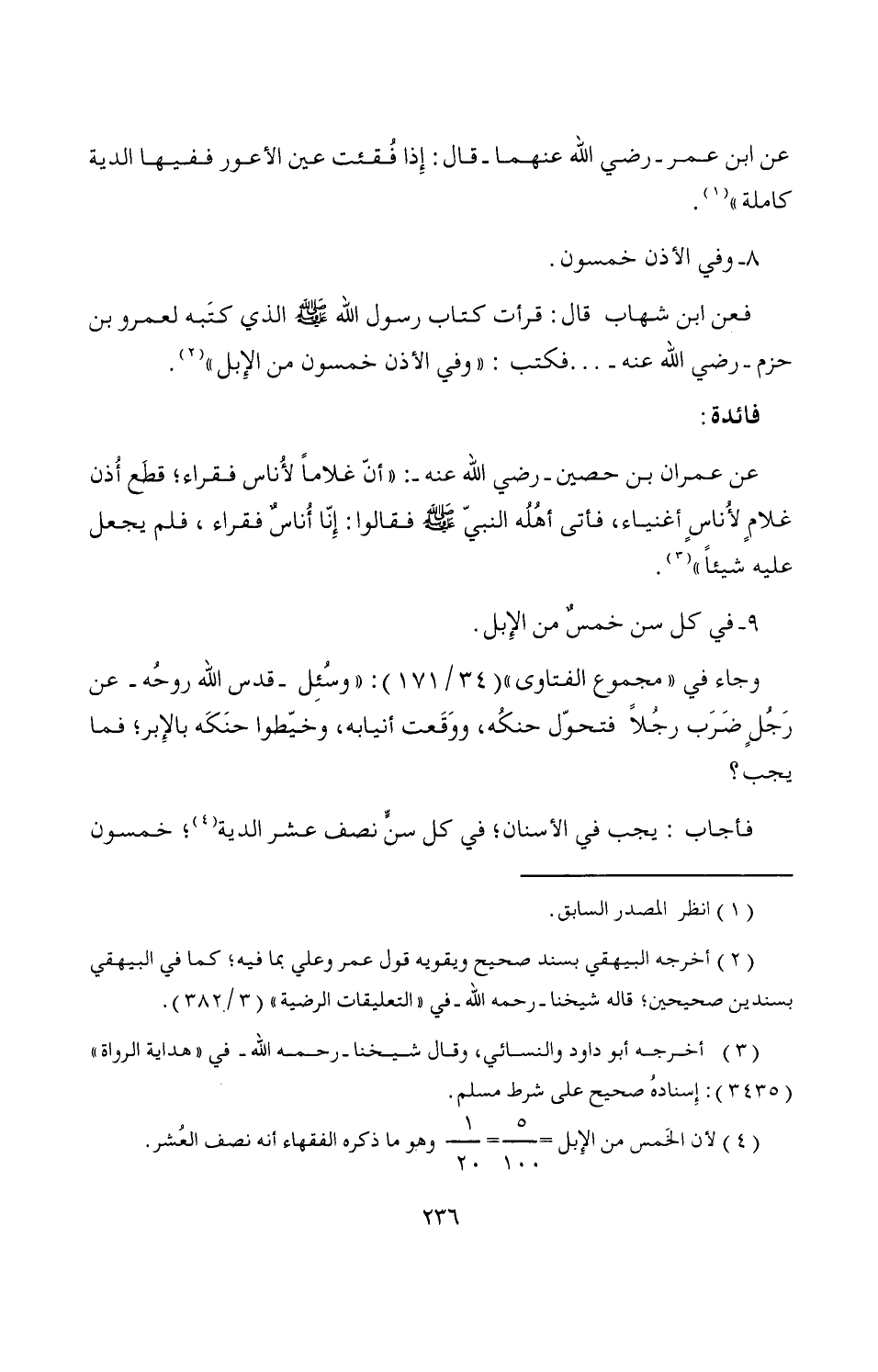 (¬4) لأن الخَمس من الإِبل = 5/ 100 = 1/ 20 وهو ما ذكره الفقهاء أنه نصف العُشر.