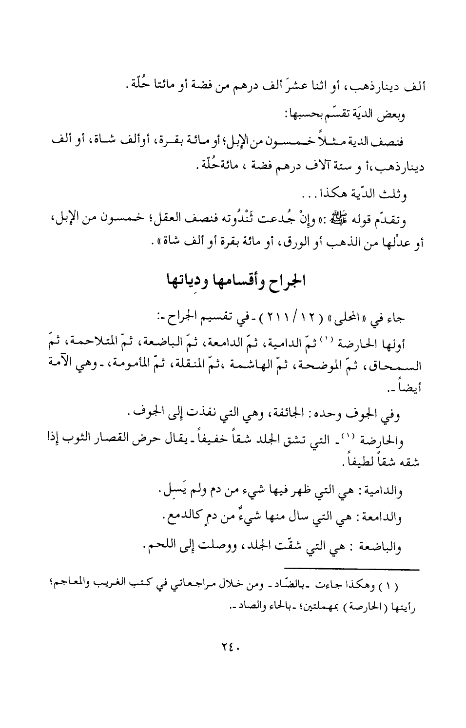 الجراح وأقسامها ودِياتها