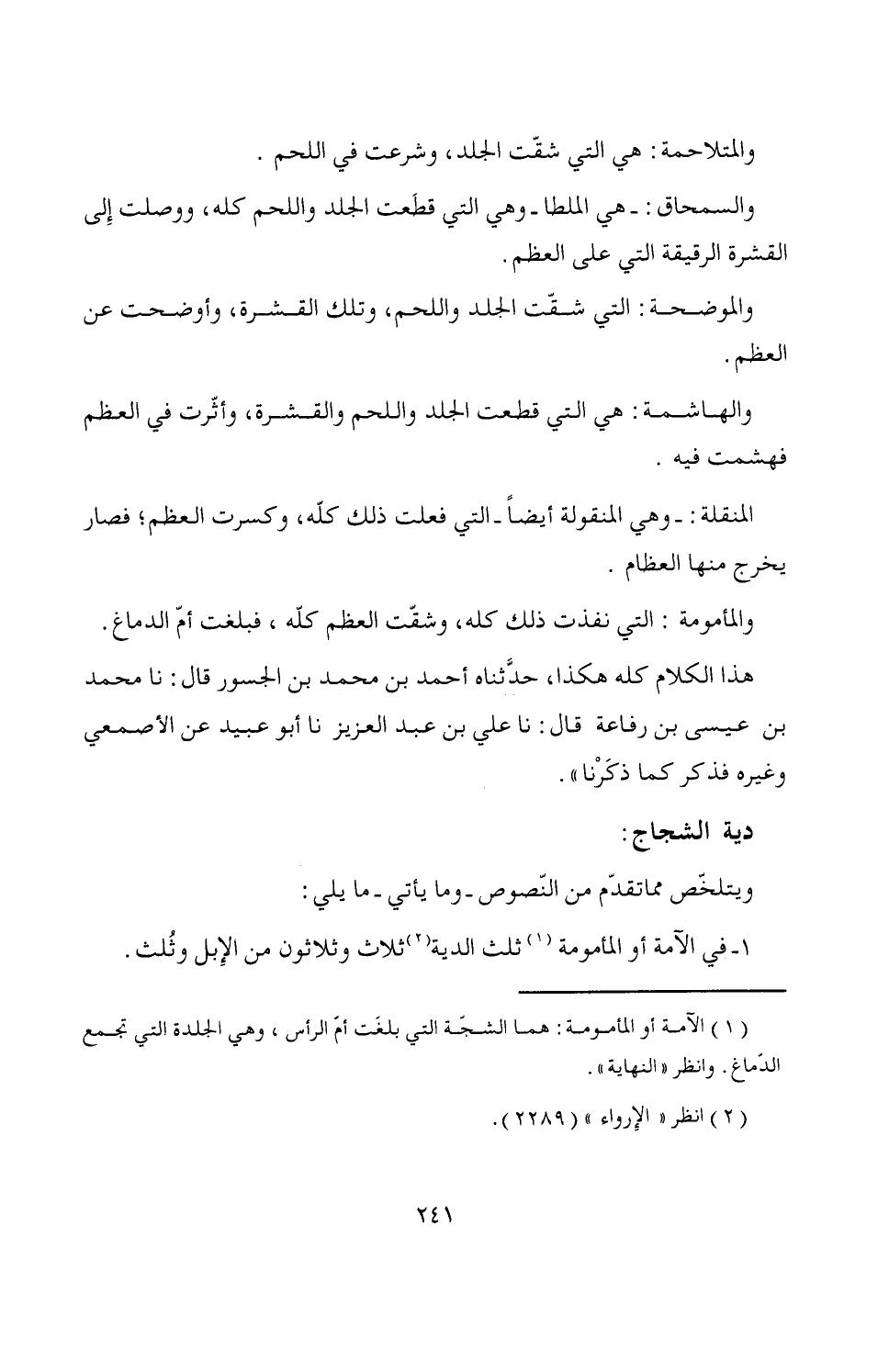 (¬1) الآمة أو المأمومة: هما الشجّة التي بلغَت أمْ الرأس، وهي الجلدة التي تجمع الدّماغ. وانظر "النهاية".