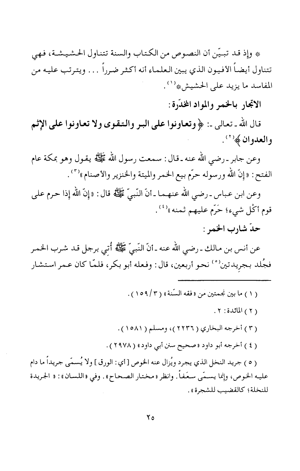 *وإِذ قد تبيّن أن النصوص من الكتاب والسنة تتناول الحشيشة، فهي تتناول أيضاً الأفيون الذي يبين العلماء أنه أكثر ضرراً ... ويترتب عليه من المفاسد ما يزيد على الحشيش* (¬1).