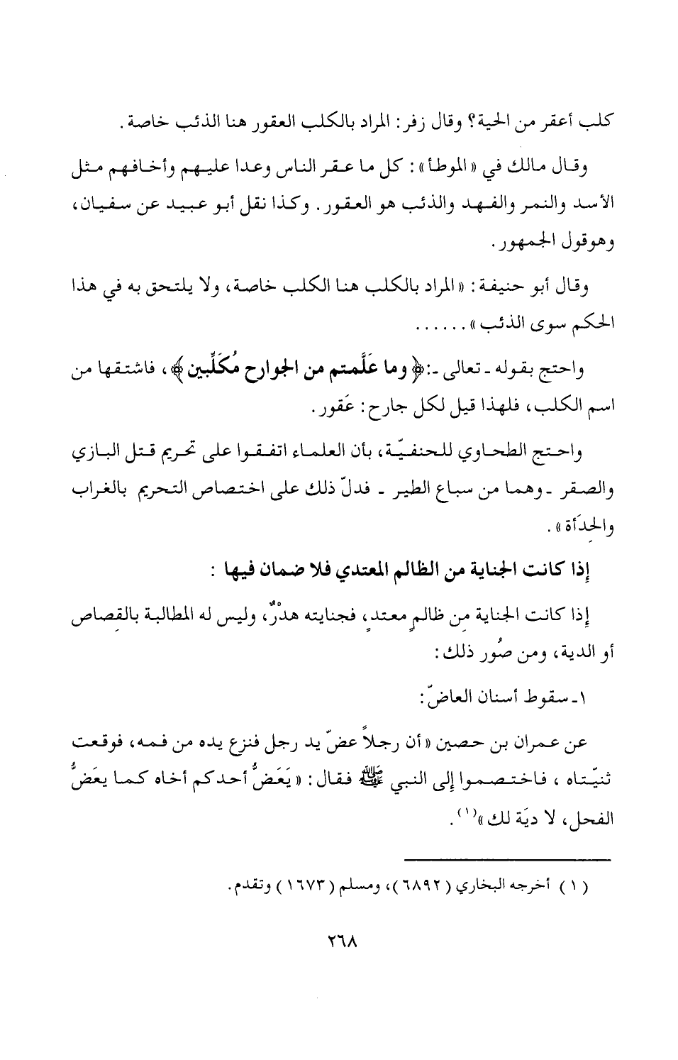 عن عمران بن حصين "أن رجلاً عضّ يد رجل فنزع يده من فمه، فوقعت ثنيّتاه، فاختصموا إِلى النبي - صَلَّى اللَّهُ عَلَيْهِ وَسَلَّمَ - فقال: "يَعَضُّ أحدكم أخاه كما يعَضُّ الفحل، لا ديَة لك" (¬1).