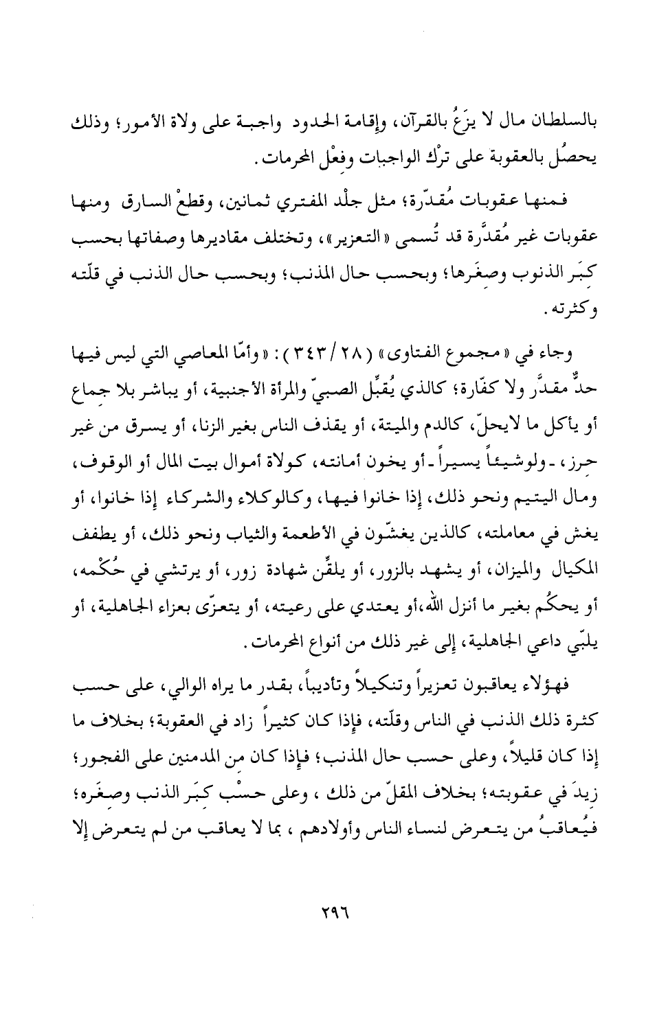 بالسلطان مال لا يزَعُ بالقرآن، وإقامة الحدود واجبة على ولاة الأمور؛ وذلك يحصُل بالعقوبة على ترْك الواجبات وفِعْل المحرمات.