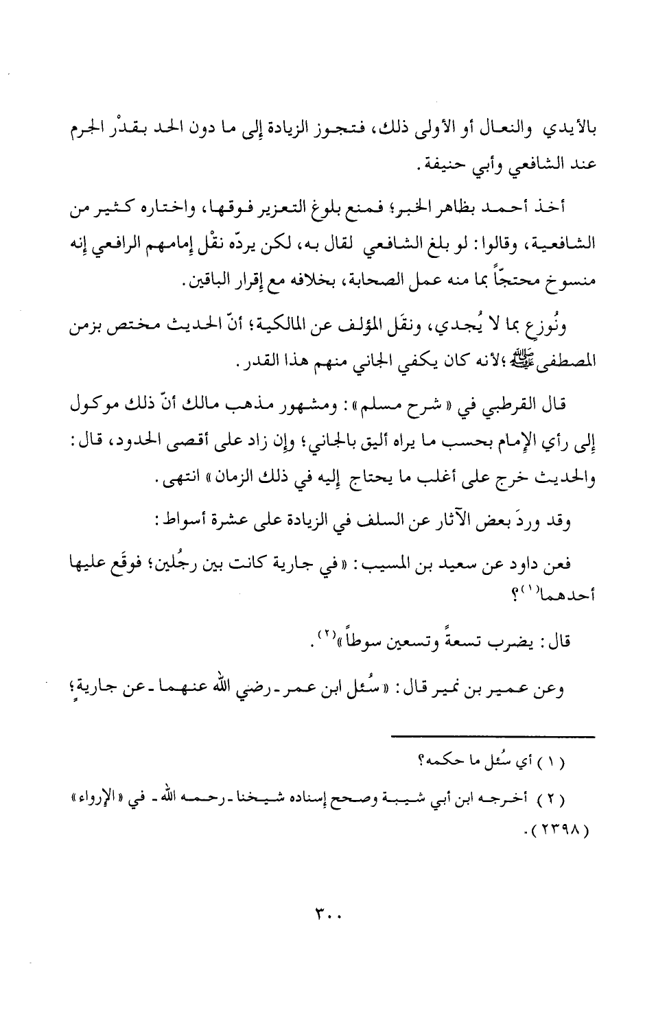 قال القرطبي في "شرح مسلم": ومشهور مذهب مالك أنّ ذلك موكول إِلى رأي الإِمام بحسب ما يراه أليق بالجاني؛ وإن زاد على أقصى الحدود، قال: والحديث خرج على أغلب ما يحتاج إِليه في ذلك الزمان" انتهى.