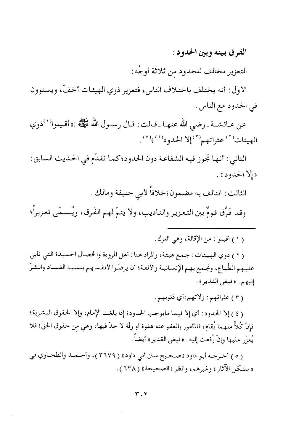 (¬4) إِلا الحدود: أي إِلا فيما ما يوجب الحدود؛ إِذا بلغت الإِمام، وإلا الحقوق البشرية؛ فإِن كُلاًّ منهما يُقام، فالمأمور بالعفو عنه هفوة أو زلّة لا حدّ فيها، وهي مِن حقوق الحقّ؛ فلا يعزّر عليها وإِنْ رُفعت إِليه. "فيض القدير" أيضاً.