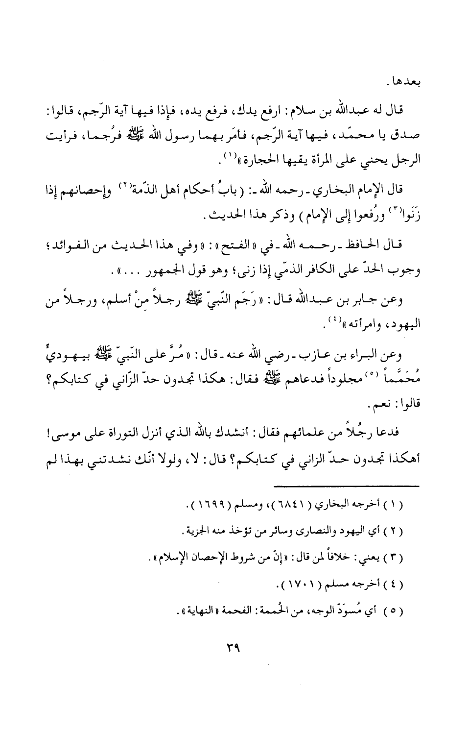 فدعا رجُلاً من علمائهم فقال: أنشدك بالله الذي أنزل التوراة على موسى! أهكذا تجدون حدّ الزاني في كتابكم؟ قال: لا، ولولا أنّك نشدتني بهذا لم
