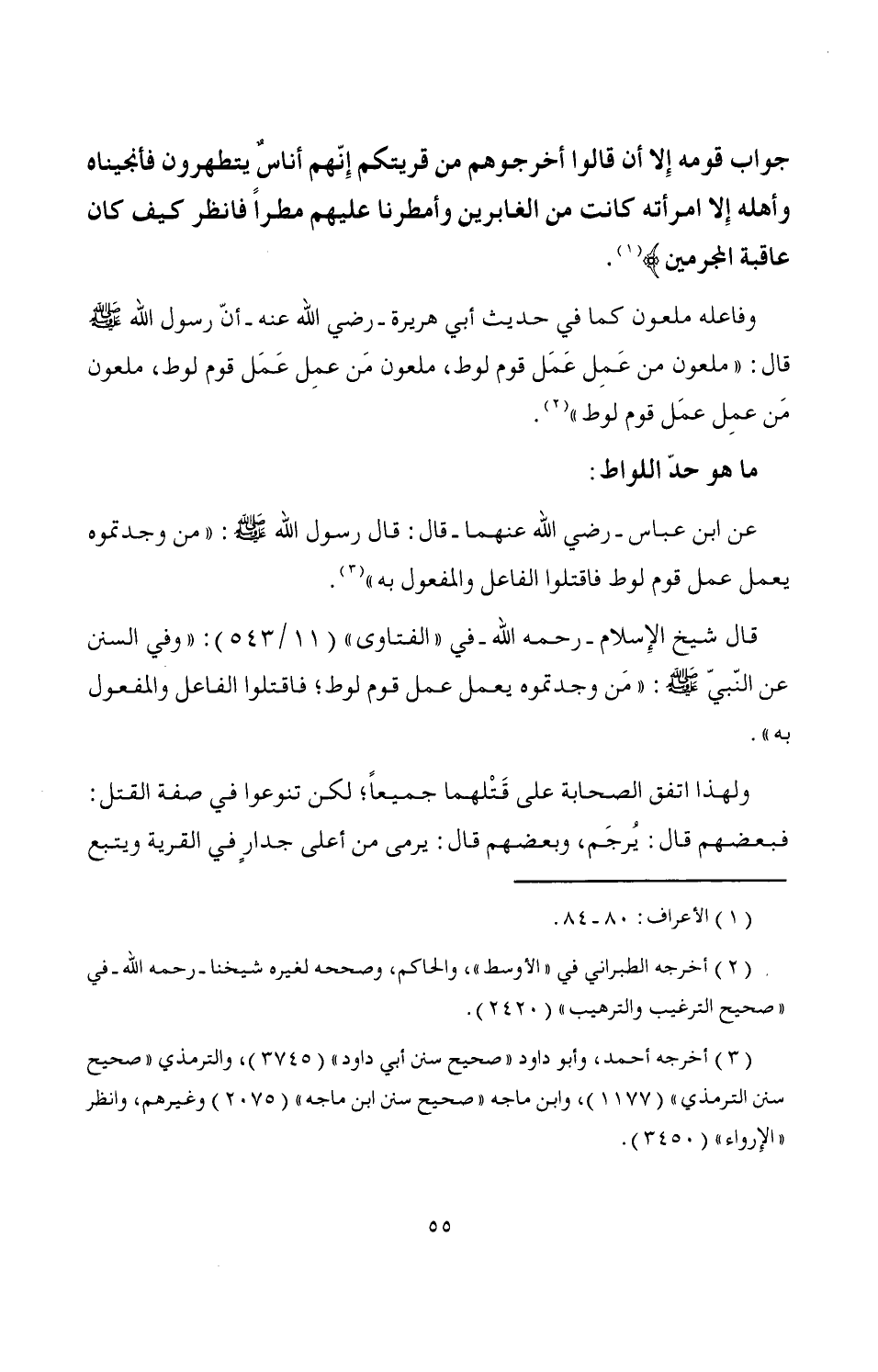 قال شيخ الإِسلام -رحمه الله- في "الفتاوى" (11/ 543): "وفي السنن عن النّبيّ - صَلَّى اللَّهُ عَلَيْهِ وَسَلَّمَ -: "مَن وجدتموه يعمل عمل قوم لوط، فاقتلوا الفاعل والمفعول به".