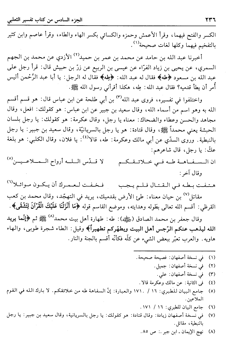 (5) جامع البيان للطبري: 16/ 171 والعبارة: إنّ السفاهة طه من خلائقكم. لا بارك الله في القوم الملاعين.