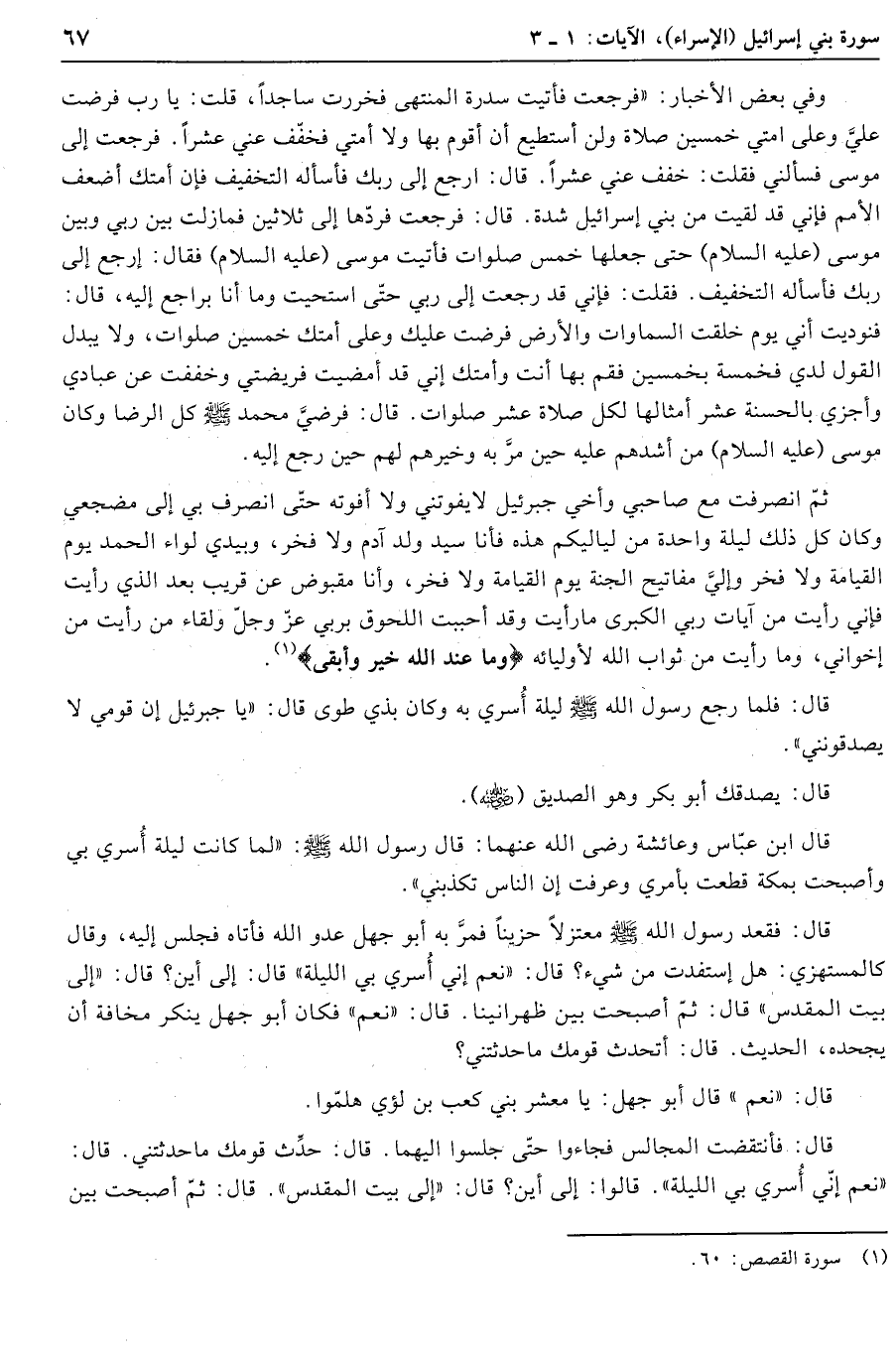 قال ابن عبّاس وعائشة رضى الله عنهما: قال رسول الله صلّى الله عليه وسلّم: «لما كانت ليلة أسري بي وأصبحت بمكة قطعت بأمري وعرفت إن الناس تكذبني» .