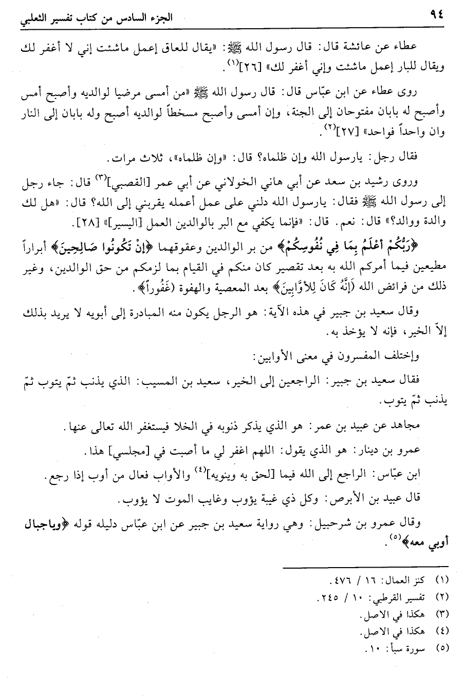 فقال سعيد بن جبير: الراجعين إلى الخير، سعيد بن المسيب: الذي يذنب ثمّ يتوب ثمّ يذنب ثمّ يتوب.