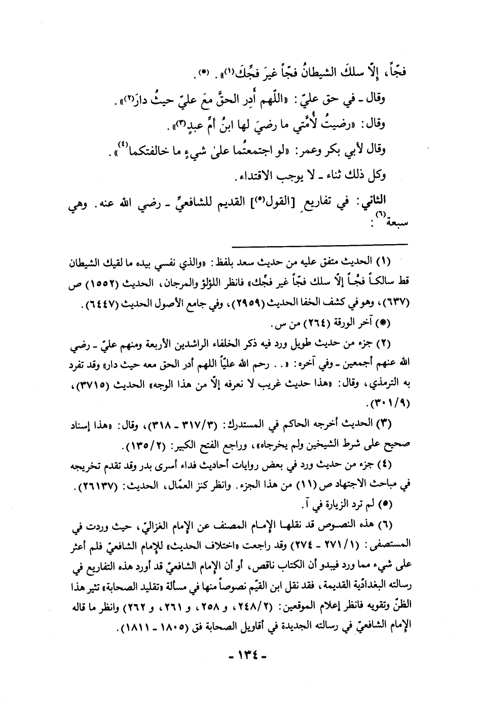 وقال في حق علي اللهم أدر الحق مع علي حيث دار وقال رضيت لأمتي ما رضي لها ابن أم عبد وقال لأبي بكر وعمر لو اجتمعتما على شئ ما خالفتكما وكل ذلك ثناء لا يوجب الاقتداء الثاني في تفاريع القول القديم للشافعي رضى الله عنه وهي سبعة
