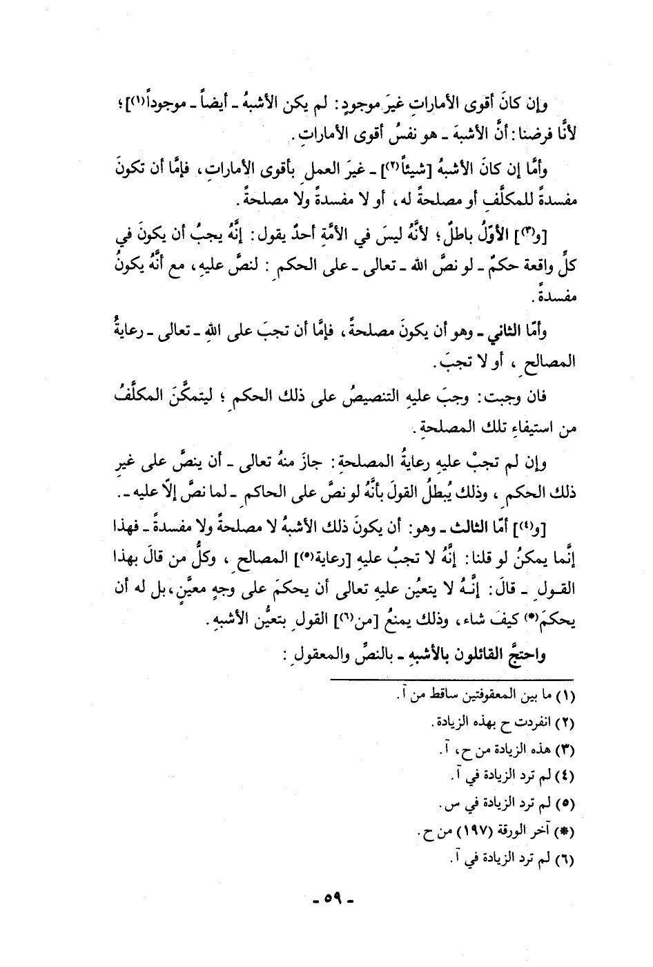 وإن كان أقوى الأمارات غير موجود لم يكن الأشبه أيضا موجودا لأنا فرضنا أن الأشبه هو نفس أقوى الأمارات وأما إن كان الأشبه شيئا غير العمل بأقوى الأمارات فإما أن تكون مفسدة للمكلف أو مصلحة له أو لا مفسدة ولا مصلحة والأول باطل لأنه ليس في الأمة أحد يقول إنه يجب أن يكون في كل واقعة حكم لو نص الله تعالى على الحكم لنص عليه مع أنه يكون مفسدة وأما الثاني وهو أن يكون مصلحة فإما أن تجب على الله تعالى رعاية المصالح أو لا تجب فان وجبت وجب عليه التنصيص على ذلك الحكم ليتمكن المكلف من استيفاء تلك المصلحة وإن لم تجب عليه رعاية المصلحة جاز منه تعالى أن ينص على غير ذلك الحكم وذلك يبطل القول بأنه لو نص على الحاكم لما نص إلا عليه وأما الثالث وهو أن يكون ذلك الأشبه لا مصلحة ولا مفسدة فهذا إنما يمكن لو قلنا إنه لا تجب عليه رعاية المصالح وكل من قال بهذا القول قال إنه لا يتعين عليه تعالى أن يحكم على وجه معين بل له أن يحكم كيف شاء وذلك يمنع من القول بتعين الأشبه واحتج القائلون بالأشبه بالنص والمعقول