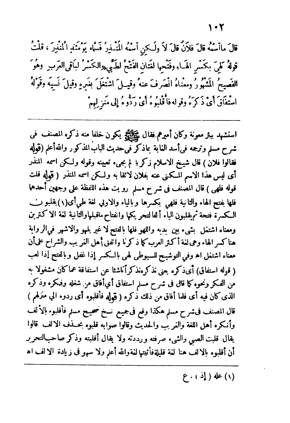 وقوله ولكن اسمه المنذر أي ليس وهذا الاسم المكنى عنه بفلان لائقاً به ولكن اسمه المنذر. قوله: (قلت قوله فلهي) قال المصنف في شرح مسلم رويت هذه اللفظة على وجهين أحدهما فلها بفتح الهاء والثانية فلهي بكسرها وبالياء والأولى لغة طيئ أي يقلبون الكسرة فتحة ثم يقلبون الياء ألفاً لتحريكها وانفتاح ما قبلها والثانية لغة الأكثرين ومعناه اشتغل بشيء بين يديه واللهو فلها بالفتح لا غير يلهو والأشهر في الرواية هنا كسر الهاء وهي لغة أكثر العرب كما ذكرنا واتفق أهل الغريب والشراح على أن معناه اشتغل اهـ. وفي التوشيح للسيوطي لهي بالكسر إذا غفل وبالفتح إذا لعب. قوله: (استفاق) أي ذكره يعني تذكره تذكراً ناشئاً عن استفاقة عما كان مشغولاً به من الفكر ونحوه كما قال في شرح مسلم استفاق أي أفاق من شغله وفكره وذكره الذي كان فيه أي فلما أفاق من ذلك ذكره. قوله: (فأقلبوه أي ردوه إلى منزلهم) قال المصنف في شرح مسلم هكذا وقع في جميع نسخ صحيح مسلم فأقلبوه بالألف وأنكره أهل اللغة والغريب والحديث وقالوا صوابه قلبوه بحذف الألف قالوا: يقال قلبت الصبي والشيء صرفته ورددته ولا يقال: أقلبته وذكر صاحب التحرير أن أقلبوه بالألف هنا لغة قليلة فأثبتها لغة أعلم ولا سهو في زيادة الألف اهـ.