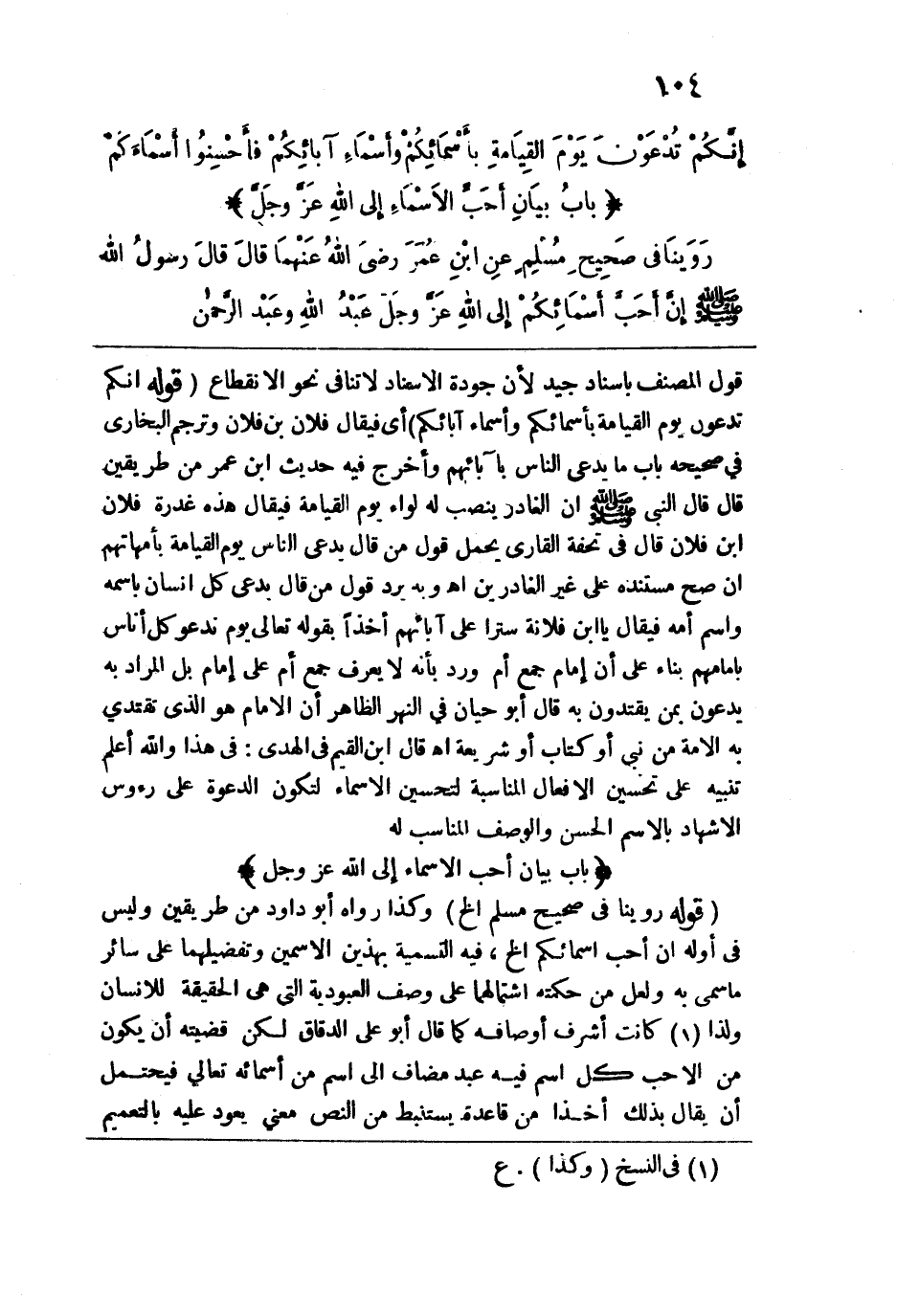 باب بيان أحب الأسماء إلي الله عزّ وجلّ