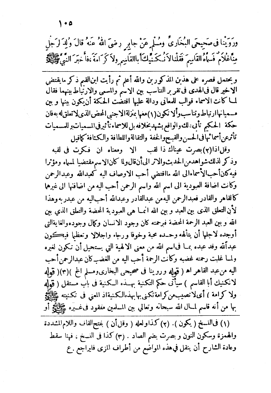 وروينا في "صحيحي البخاري ومسلم" عن جابر رضي الله عنه قال: ولد لرجل منا غلام فسماه القاسم، فقلنا: لا نُكَنِّيك أبا القاسم ولا كَرَامَةَ، فأخبرَ النبي -صلى الله عليه وسلم-