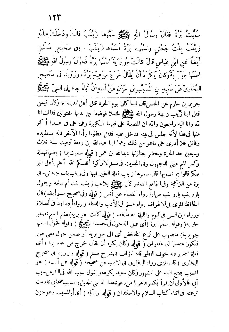 سميتُ برَّةَ، فقال رسول الله -صلى الله عليه وسلم-: "سموها زينبَ، قالت: ودخلت عليه زينبُ بنت جحش واسمها برَّة، فسماها زينبَ".