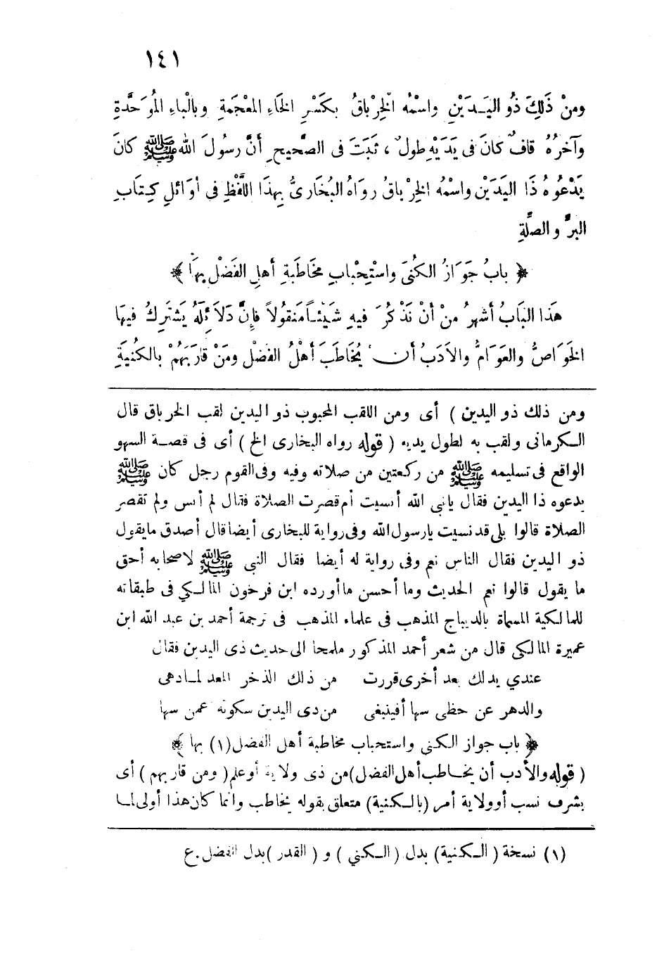 باب جواز الكنى واستحباب مخاطبة أهل الفضل بها