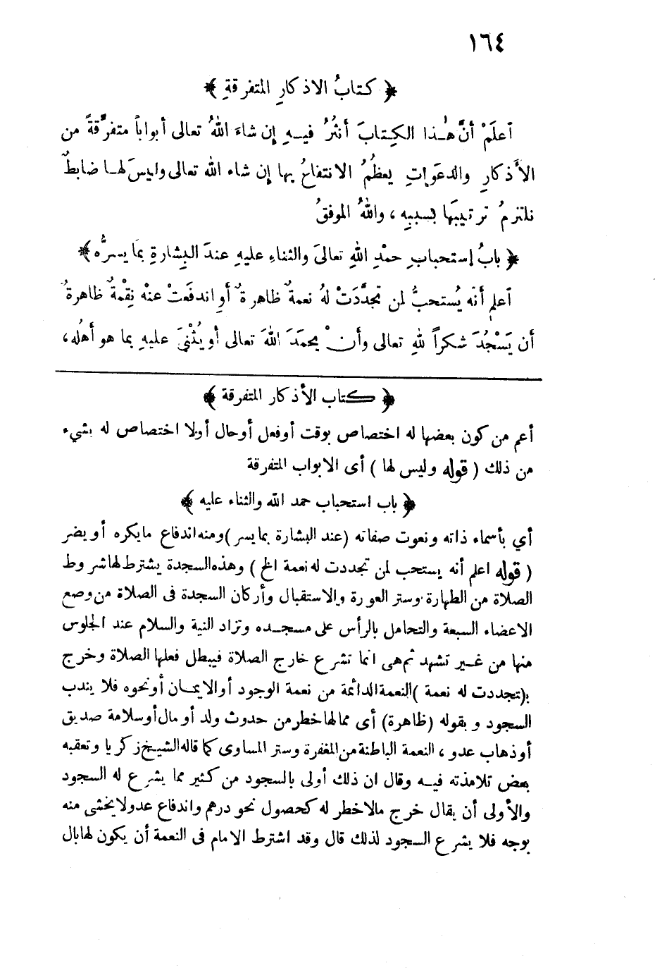 اعلم أنه يستحبُّ لمن تجددت له نِعْمَةٌ ظاهرة، أو اندفعت عنه نقْمَةٌ ظاهرة، أن يسجد شكراً لله تعالى، وأن يحمَد الله تعالى، أو يُثني عليه بما هو أهله،