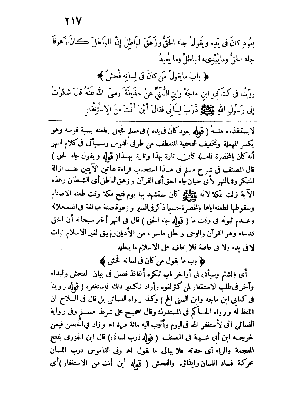 روينا في كتابي ابن ماجه وابن السني عن حذيفة رضي الله عنه قال: "شكوت إلى رسول الله -صلى الله عليه وسلم- ذَرَبَ لساني، فقال: أيْنَ أنْتَ مِنَ الاستغْفَارِ؟