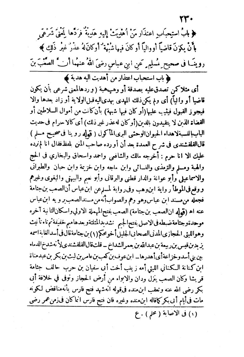 باب استحباب اعتذار من أهديت إليه هدية فردَّها لمعنى شرعي بأن يكون قاضياً أو والياً أو كان فيها شبهة أو كان له عذر غير ذلك