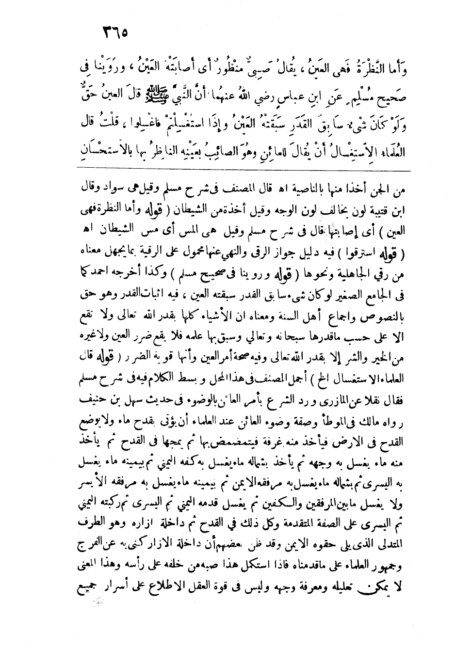 وروينا في "صحيح مسلم" عن ابن عباس رضي الله عنهما أن النبي -صلى الله عليه وسلم- قال: "العَيْنُ حَقٌّ ولَوْ كانَ شَيءٌ سابَقَ القَدَرَ سَبَقَتْهُ العَيْنُ، وإذَا اسْتُغْسِلْتُمْ فاغْسِلُوا".