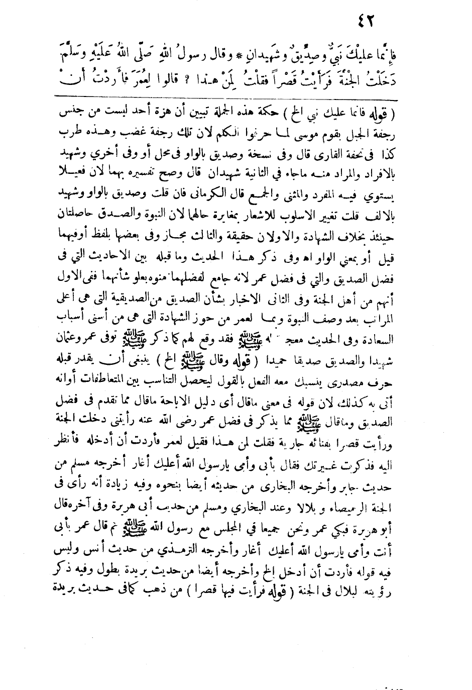 فإنَّما عَلَيكَ نَبِيٌّ وَصِدَّيقٌ وَشَهِيدَانِ".