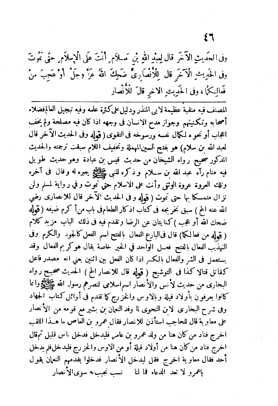 كتاب الجهاد وفي شرح البخاري لابن النحوي لما وفد النعمان بن بشير مع قومه من الأنصار على معاوية قال للحاجب استأذن للأنصار فقال عمرو بن العاص ما هذا اللقب اخرج فناد من كان هنا من ولد عمرو بن عامر فليدخل فدخل ناس قليل ثم قال: اخرج فناد من كان هنا من أولاد قيلة أو من الأوس والخزرج فليدخل فلم يدخل أحد فقال معاوية: اخرج فقل ليدخل الأنصار فدخلوا يقدمهم النعمان يقول:
