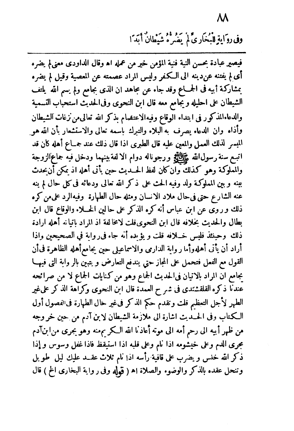 وفي رواية للبخاري "لَمْ يَضُرَّهُ شَيطانٌ أَبَداً".