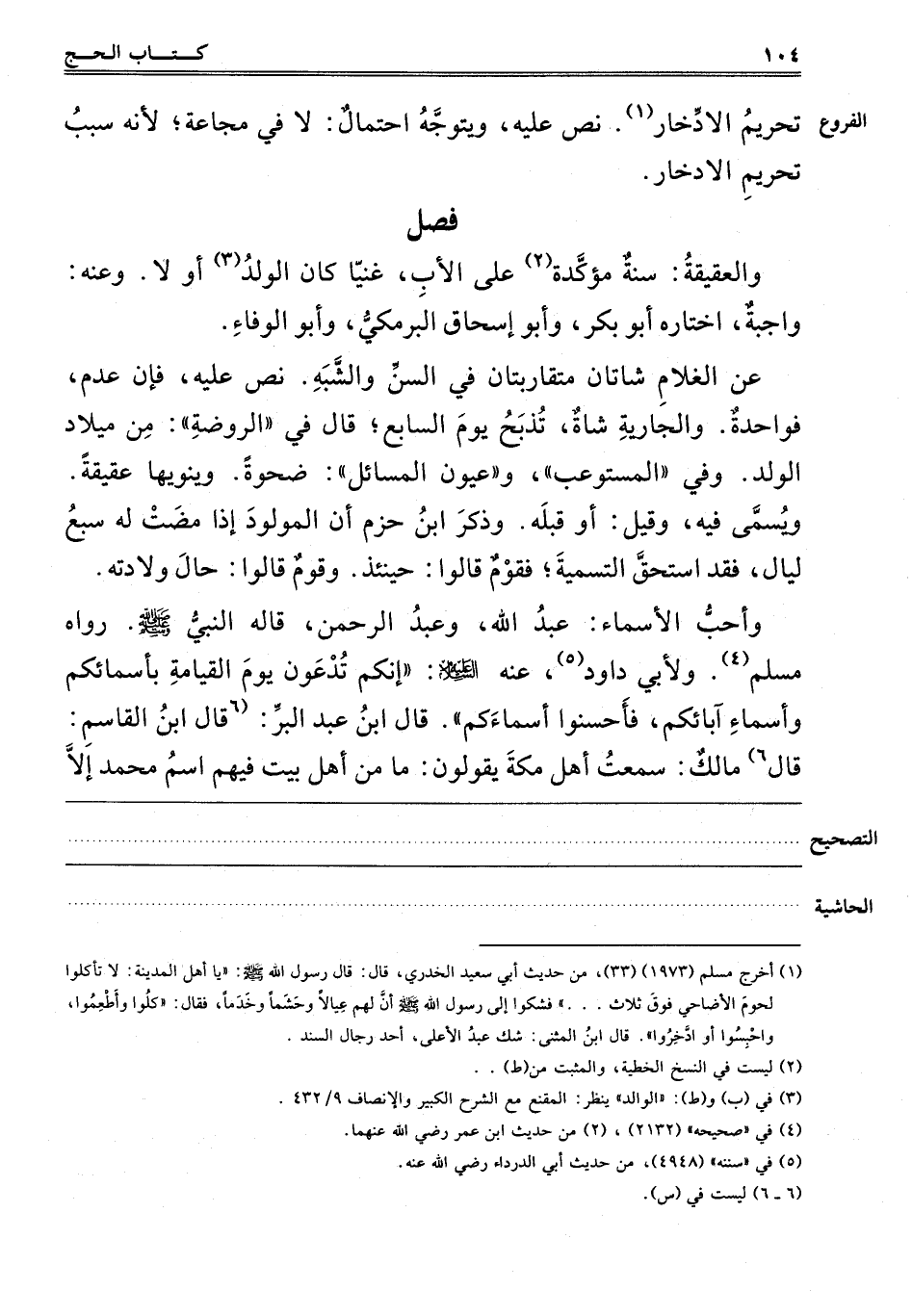 وَأَحَبُّ الْأَسْمَاءِ عَبْدُ اللَّهِ وَعَبْدُ الرَّحْمَنِ, قَالَهُ النَّبِيُّ صَلَّى اللَّهُ عَلَيْهِ وَسَلَّمَ. رَوَاهُ مُسْلِمٌ4, وَلِأَبِي دَاوُد5 عَنْهُ عَلَيْهِ السَّلَامُ "إنَّكُمْ تُدْعَوْنَ يَوْمَ الْقِيَامَةِ. بِأَسْمَائِكُمْ وَأَسْمَاءِ آبَائِكُمْ فَأَحْسِنُوا أَسْمَاءَكُمْ" قَالَ ابْنُ عَبْدِ الْبَرِّ 6قَالَ ابْنُ الْقَاسِمِ: قَالَ مَالِكٌ: سَمِعْت أَهْلَ مَكَّةَ يَقُولُونَ: مَا مِنْ أَهْلِ بيت فيهم اسم محمد إلا