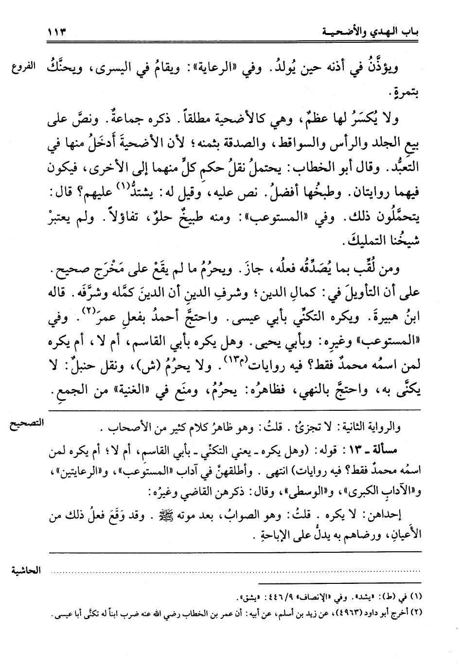 "مَسْأَلَةٌ 13" قَوْلُهُ. وَهَلْ يُكْرَهُ يَعْنِي التَّكَنِّي بِأَبِي الْقَاسِم أَمْ لَا؟ أَمْ يُكْرَهُ لِمَنْ اسْمُهُ مُحَمَّدٌ فَقَطْ؟ فِيهِ رِوَايَات, انْتَهَى. وَأَطْلَقَهُنَّ فِي آدَابِ الْمُسْتَوْعِبِ وَالرِّعَايَتَيْنِ وَالْآدَابِ الْكُبْرَى وَالْوُسْطَى وَقَالَ: ذَكَرَهُنَّ الْقَاضِي وَغَيْرُهُ.