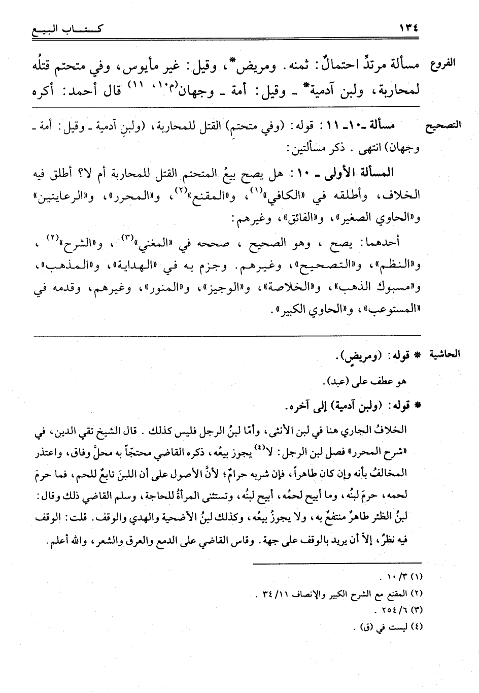 "الْمَسْأَلَةُ الْأُولَى" هَلْ يَصِحُّ بَيْعُ الْمُتَحَتِّمِ الْقَتْلَ لِلْمُحَارَبَةِ أَمْ لَا؟ أَطْلَقَ فِيهِ الْخِلَافَ, وَأَطْلَقَهُ فِي الْكَافِي1 وَالْمُقْنِعِ2 وَالْمُحَرَّرِ وَالرِّعَايَتَيْنِ وَالْحَاوِي الصَّغِيرِ وَالْفَائِقِ وَغَيْرِهِمْ.
