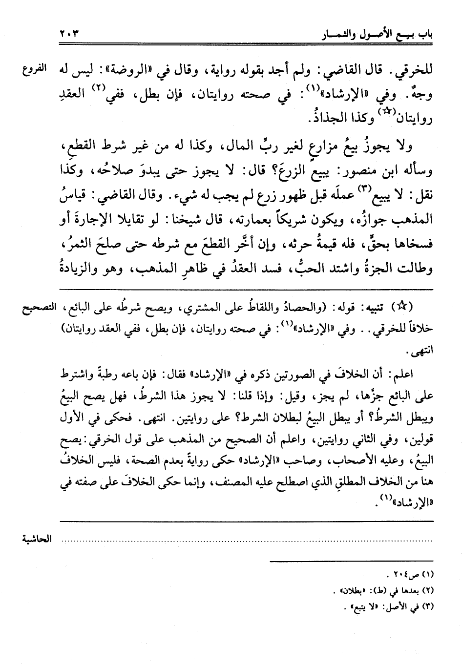 ـــــــــــــــــــــــــــــQ"*" تَنْبِيهٌ: قَوْلُهُ: وَالْحَصَادُ وَاللَّقَاطُ عَلَى الْمُشْتَرِي, وَيَصِحُّ شَرْطُهُ عَلَى الْبَائِعِ, خِلَافًا لِلْخِرَقِيِّ. وَفِي الْإِرْشَادِ1 فِي صِحَّتِهِ رِوَايَتَانِ, فَإِنْ بَطَلَ فَفِي الْعَقْدِ رِوَايَتَانِ, انْتَهَى.