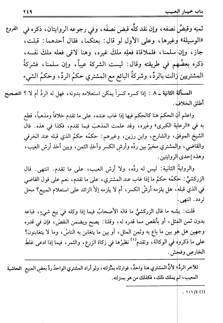 ـــــــــــــــــــــــــــــQ"الْمَسْأَلَةُ الثَّانِيَةُ" إذَا كَسَرَهُ كَسْرًا يُمْكِنُ اسْتِعْلَامُهُ بِدُونِهِ فَهَلْ لَهُ الرَّدُّ أَمْ لَا؟ أَطْلَقَ الْخِلَافَ.